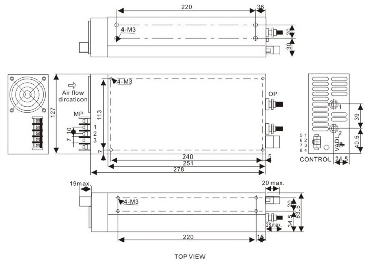 電源尺寸:278mmx127mmx68mm