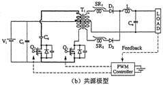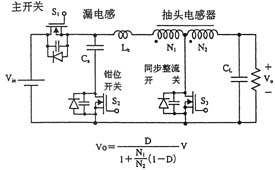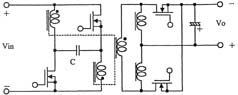 另外,如圖3所示,在采用絕緣變壓器的場合,研究人員還提出了將有源鉗位電路嵌入推挽式轉(zhuǎn)換器中的方案,可在采用48V輸入和1.2V/70A輸出的條件下實(shí)現(xiàn)高達(dá)91%的效率。上面講到的幾種電路方式基本上都是一段式結(jié)構(gòu),最近,出于進(jìn)一步提高效率的考慮,人們正在加緊研發(fā)兩段式結(jié)構(gòu)的轉(zhuǎn)換器。就普通的轉(zhuǎn)換器而言,采用兩段式結(jié)構(gòu)將導(dǎo)致效率下降是人所共知的常識,然而,在低電壓大電流轉(zhuǎn)換器中,對輸出進(jìn)行同步整流是很普遍的做法,因此,如何實(shí)現(xiàn)同步整流操作的高效化便成為了關(guān)鍵所在。