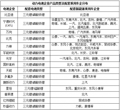 附表:動(dòng)力電池企業(yè)產(chǎn)品類型及配套客車企業(yè)分布