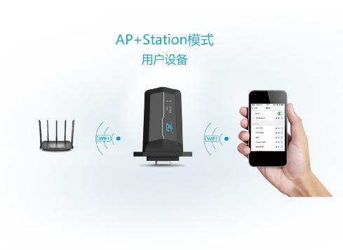 Wi-Fi 模塊不僅支持常用的AP、Station 工作模式,且支持AP&Station 兩種模式同時工作,模塊在接入到路由器的同時,也可以作為熱點允許其他設(shè)備連接,例如在工作的同時可方便手機、ipad、筆記本等接入進(jìn)行無線配置。