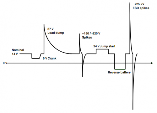 最有威脅的電壓瞬變是由拋負(fù)載和跳啟動(dòng)引起的電壓瞬變,但所有其他危害都可能影響電子模塊的正常運(yùn)行。