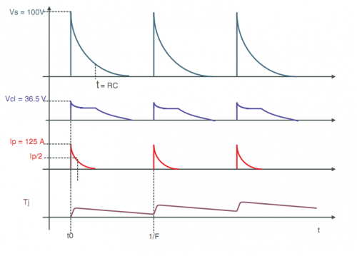 Ip=125A 表示通過(guò)TVS的瞬時(shí)大電流達(dá)到125A,因?yàn)門VS器件的導(dǎo)通,大電流的流過(guò),使得非常強(qiáng)的浪涌得到泄放,電路安全。