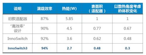 采用InnoSwitch3系列產(chǎn)品的適配器與舊款適配器性能對比圖