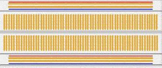 電阻器和電容器等元件的引線插入孔中。每組五個孔通過下面的金屬條連接形成一個節(jié)點。節(jié)點是電路中兩個或多個元件連接的點??赏ㄟ^將元件引線插入共同節(jié)點來實現(xiàn)元件之間的連接。試驗板頂部和底部用紅色和藍色條紋表示的一長排孔用于電源連接。插入元件并用跳線連接在一起便可構(gòu)建電路的其余部分。此類試驗板最好搭配使用實芯線而不是多股絞合線。為方便起見,還提供配有插入式引腳的跳線。