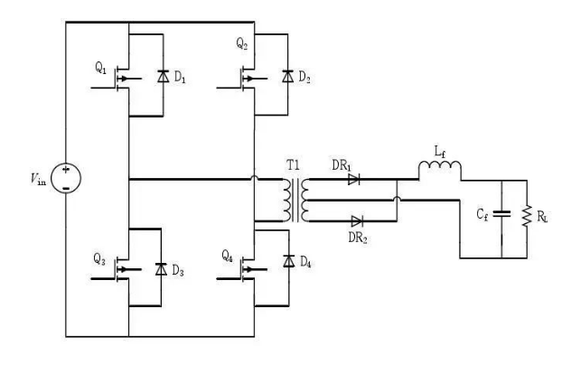 又叫做功率模塊,是整個DCDC的主體。一個典型的全橋型 DCDC 變換器主電路拓?fù)淙缦聢D所示。